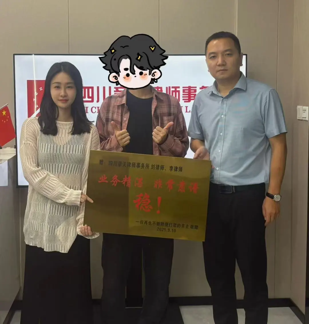 2025年9月26日,当事人曾女士专程到访我所,将一面书有 “业务精湛、非常靠谱 稳!” 的感谢牌匾,赠予案件承办人刘纭韬律师、李佳桐律师,以答谢二位提供的专业帮助。