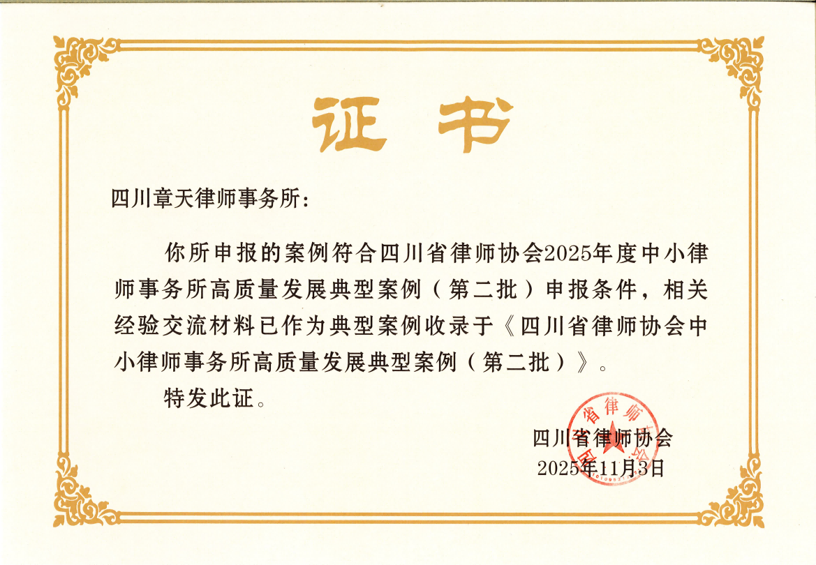 此次入选,既是对章天律所在专业领域取得优异成绩的肯定,更是对律所在业务创新和服务质量方面的更高要求。章天律所将继续秉持专业化发展理念,不断提升法律服务品质,为法治四川建设贡献更大力量。