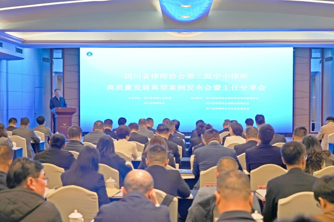 2025年11月3日,中共四川省律师行业党委、四川省律师协会第二批四川省中小律所高质量发展典型案例发布会暨主任分享会在成都召开。